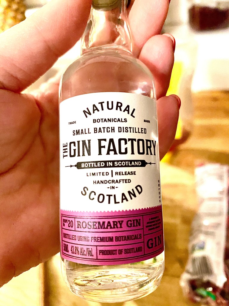 - 1 mini bottle (or a 2 oz shot) The Gin Factory Rosemary Gin