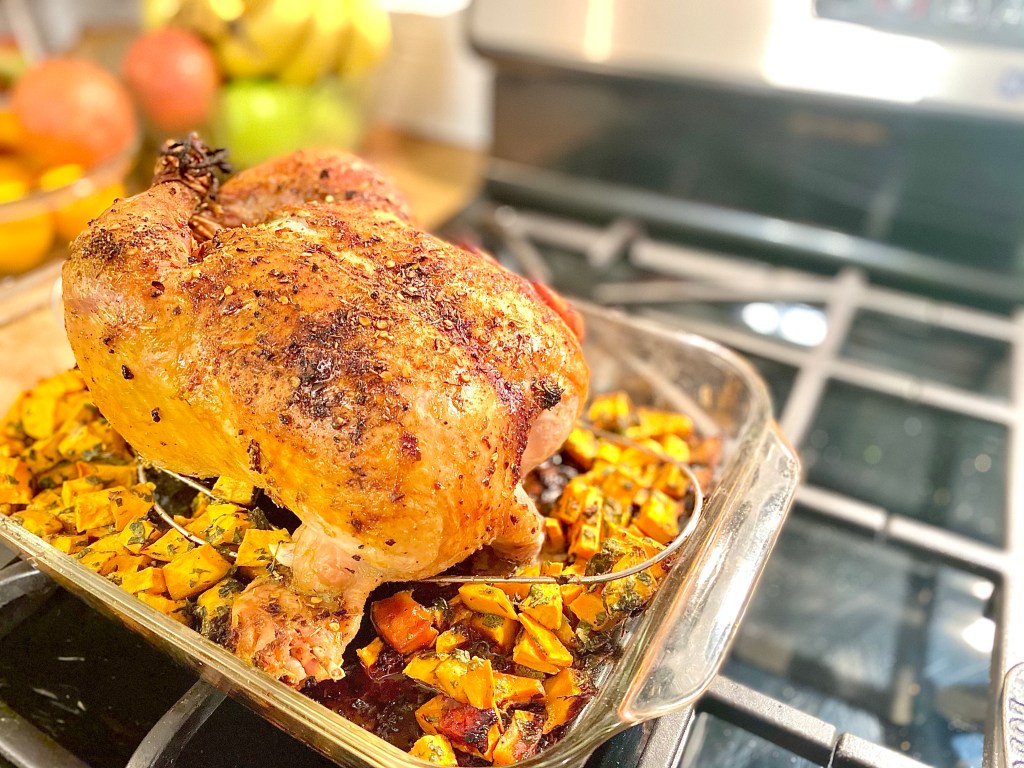 This sweet potato dish goes perfectly with a roast chicken, but would also be great for breakfast with an egg. It’s versatile and easy and if you prefer your sweet potatoes savory can make an excellent holiday dish too.