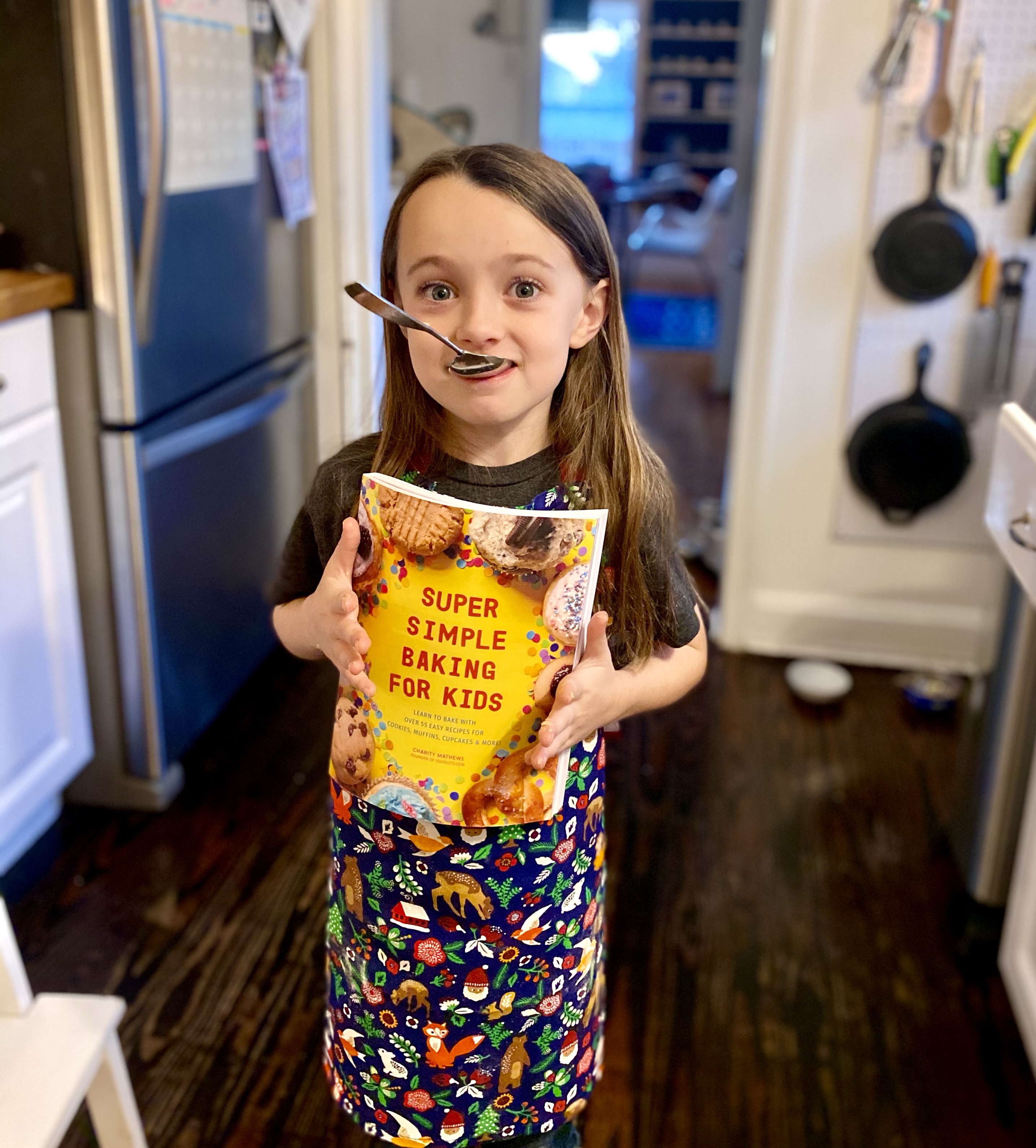 My seven-year-old, Ellie, was lucky enough to be gifted Super Simple Baking For Kids by Charity Mathews for Christmas (thank you Aunt Ali!). Naturally, we had to try it out this week. First, we skimmed the recipes. She initially wanted to try the “big pretzel.” However, after looking at the rest of the recipes, we settled on our first attempt being the chocolate chip cookie. We made this decision because (direct Ellie quote) “Everyone needs to know how to make a chocolate chip cookie.” I couldn’t agree more. Every kids cookbook should have a chocolate chip cookie recipe!