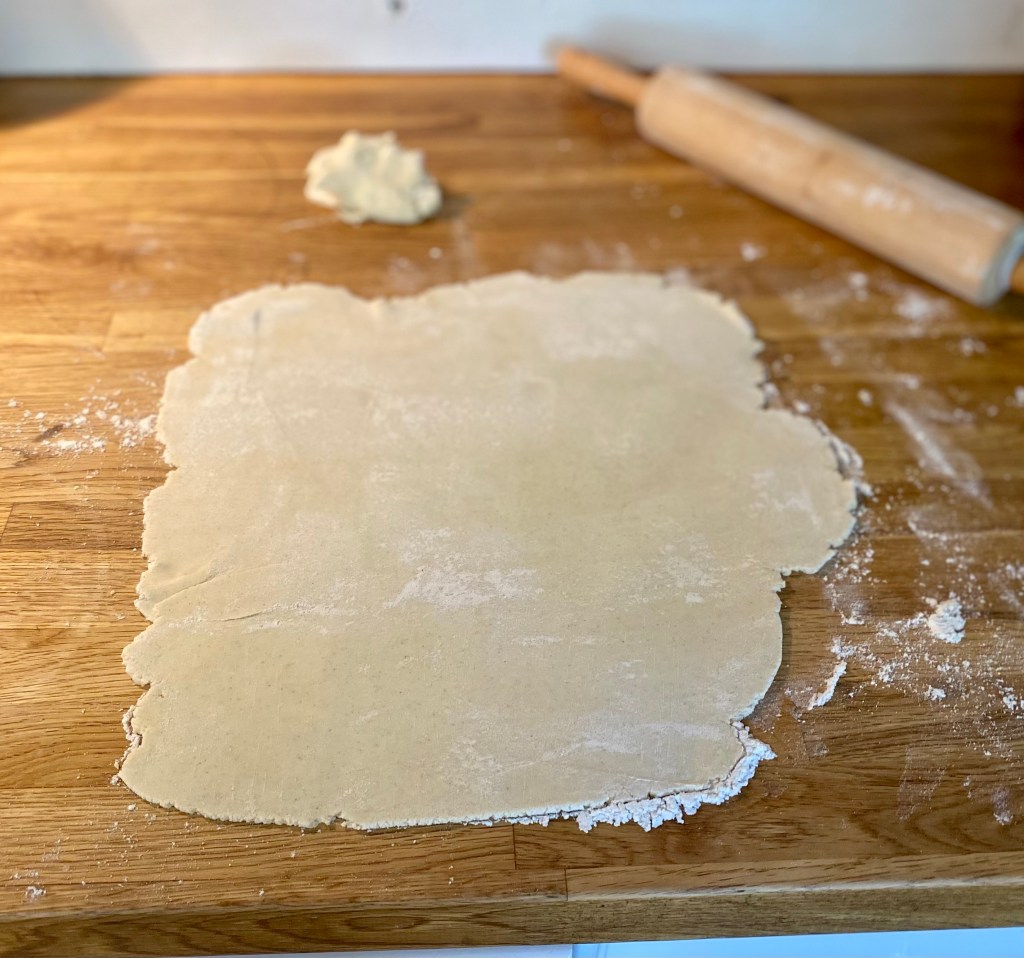 Let that mixture sit to cool while you prepare the pie crust, linked above. I like this crust, because unlike some other gluten free crusts it rolls and handles just like regular flour.